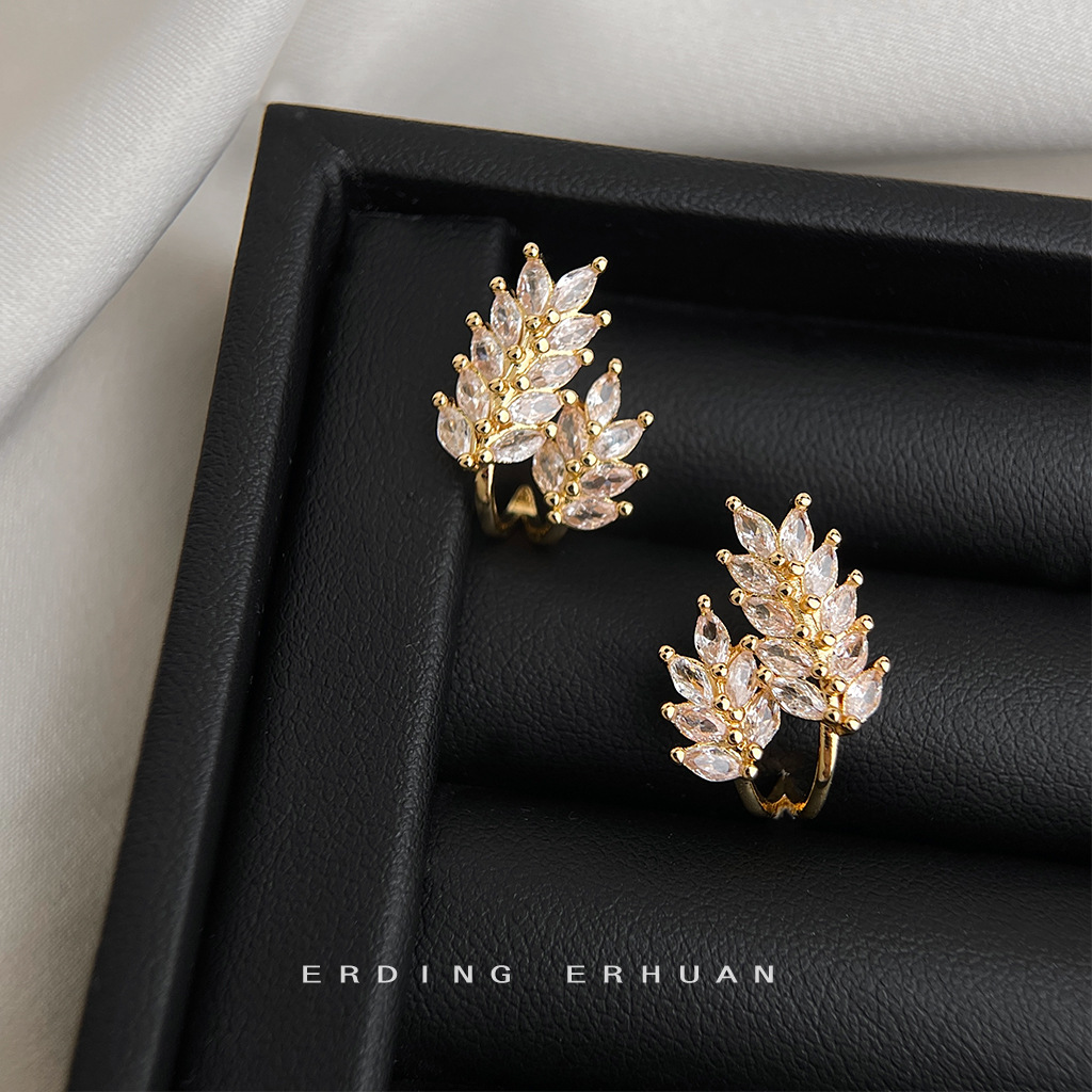 ジルコン925銀針メッキ14kジルコン麦穂金耳飾り気質シンプル通勤高級感耳飾り