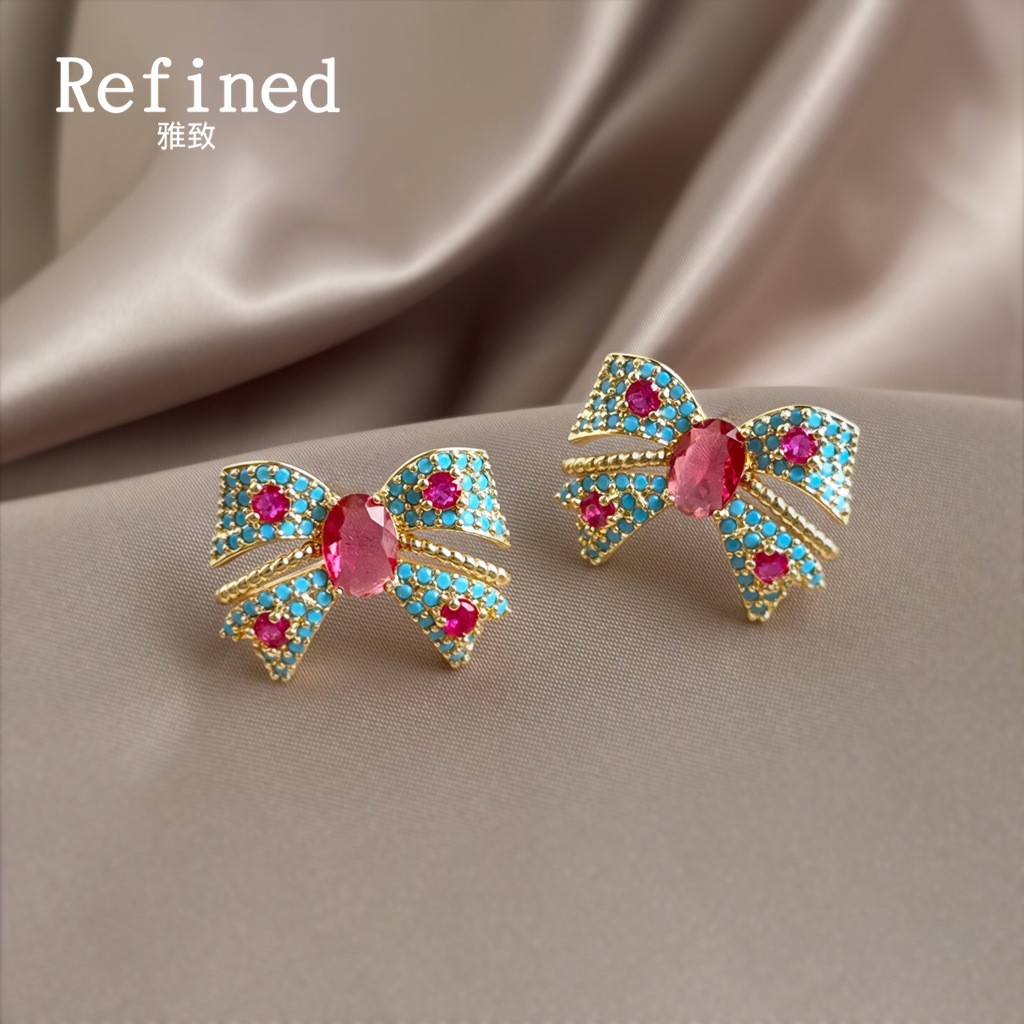 マイクロセットジルコン 925 シルバー針メッキ 14K ファッショナブルなハイエンドブルー多用途リボンイヤリング工場ニッチイヤリング