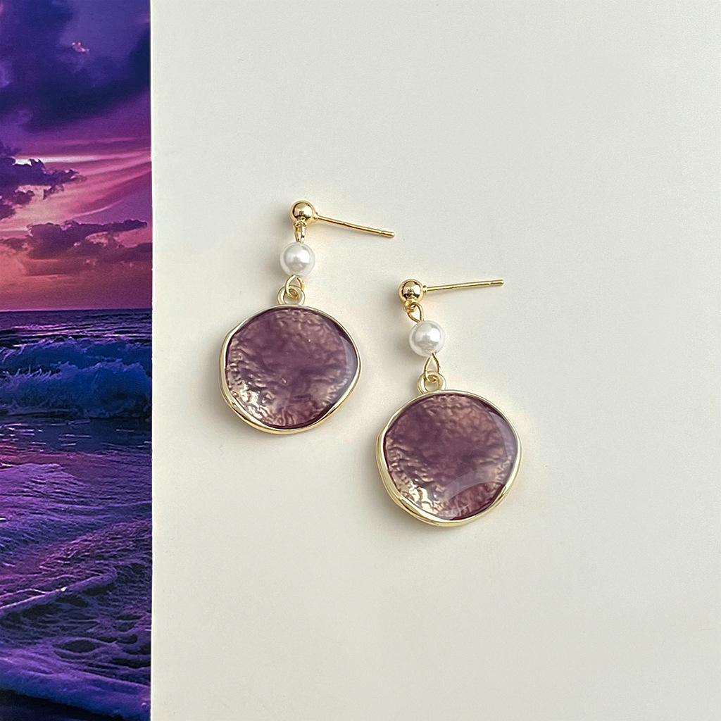 カイシャ!オリジナル手作りデザイナーエナメルドリップ釉紫色のグラデーションラウンド幾何学的な新しいイヤリング女性のイヤリング