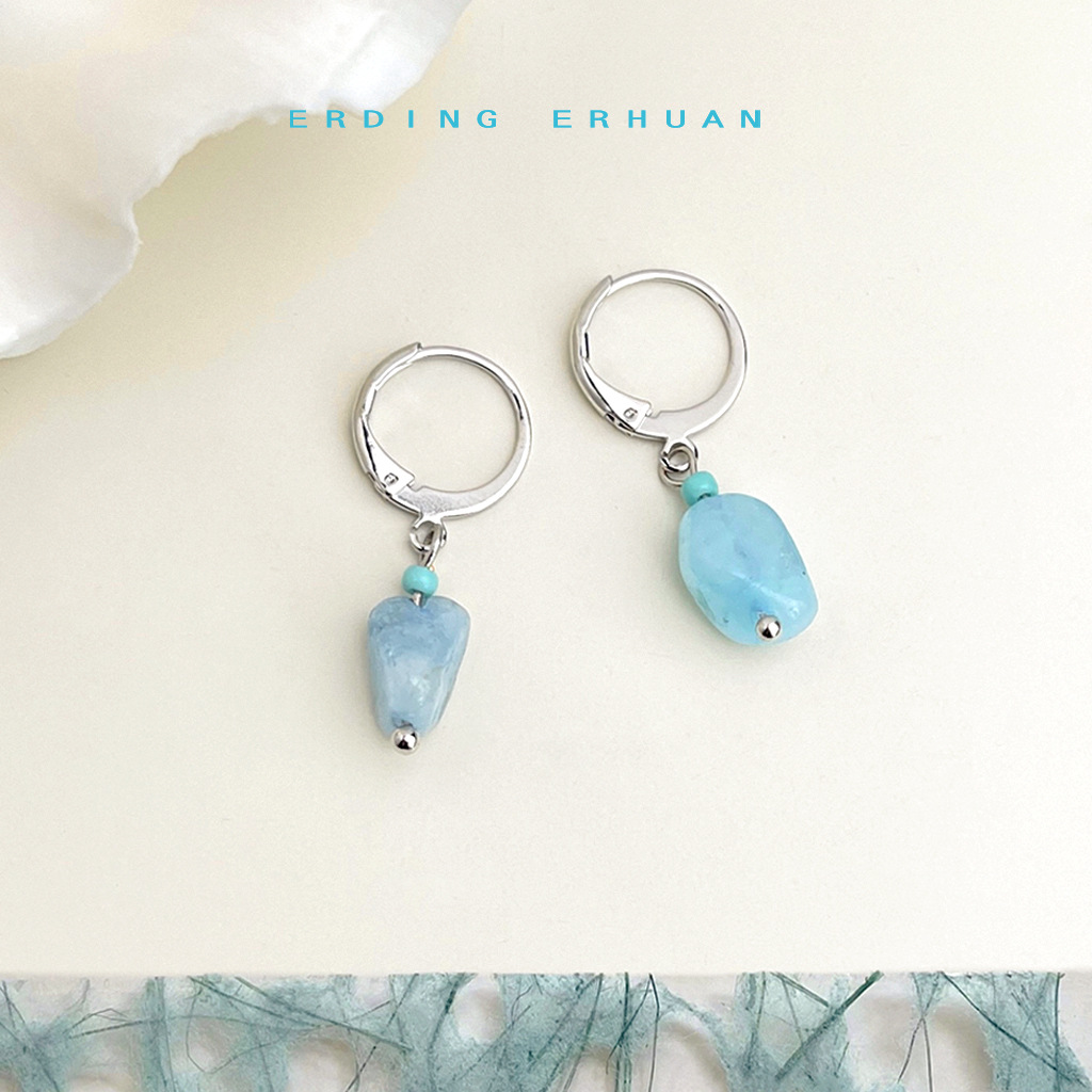 「ブルーシー」~フレッシュブルークリスタル砂利ピアス個性インスタイル天然石リゾート風ピアス工場