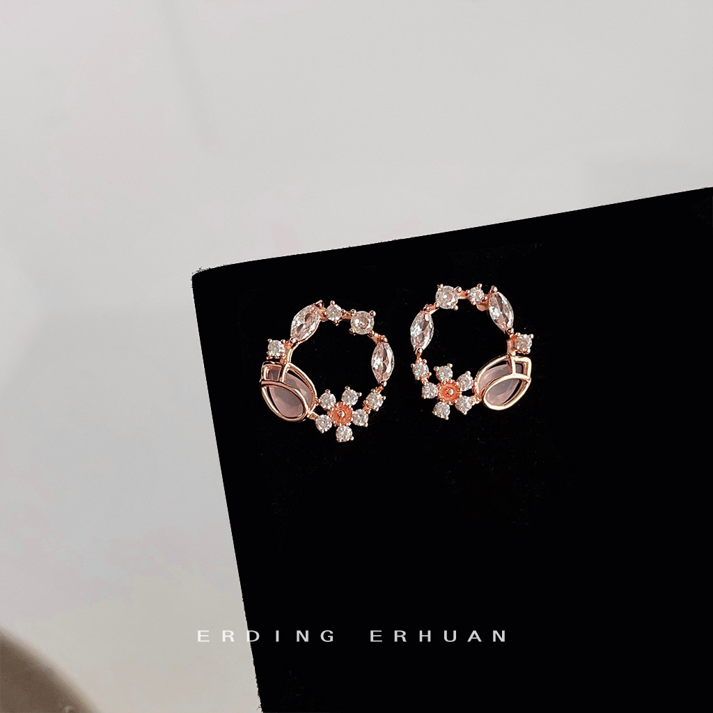 マイクロ象嵌ジルコンガラスキャッツアイガーランドイヤリング 925 シルバー針ローズゴールドイヤリング工場甘いイヤリング卸売