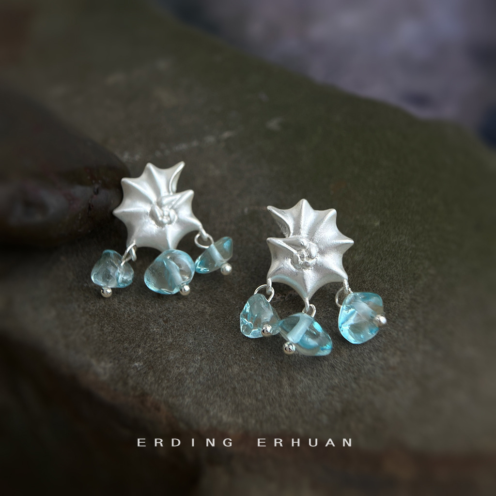 青い海 ~ デザイナーのガラス水晶海藍宝色海螺耳飾り925銀針新型イヤリング工場