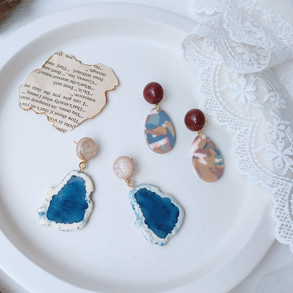 半透青日韓chi幾何学ブロック925銀針メッキ14kピアス新2022年耳飾りファッションイヤリング