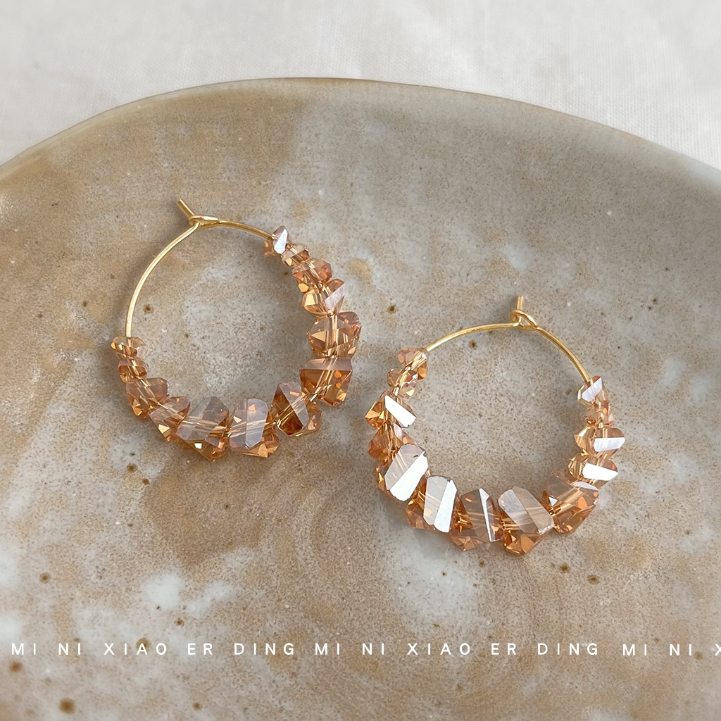 文学レトロ中世スタイルガラスクリスタル手作りデザインラウンド幾何学的なコーヒー色のイヤリングイヤリング工場ジュエリー