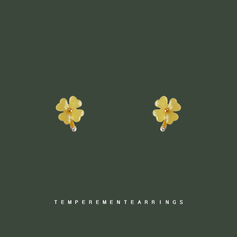 フォレストスタイルの新鮮な四つ葉の花通勤イヤリング925シルバー針ファッショナブルなシンプルな葉のデザインクリエイティブな小さなイヤリング