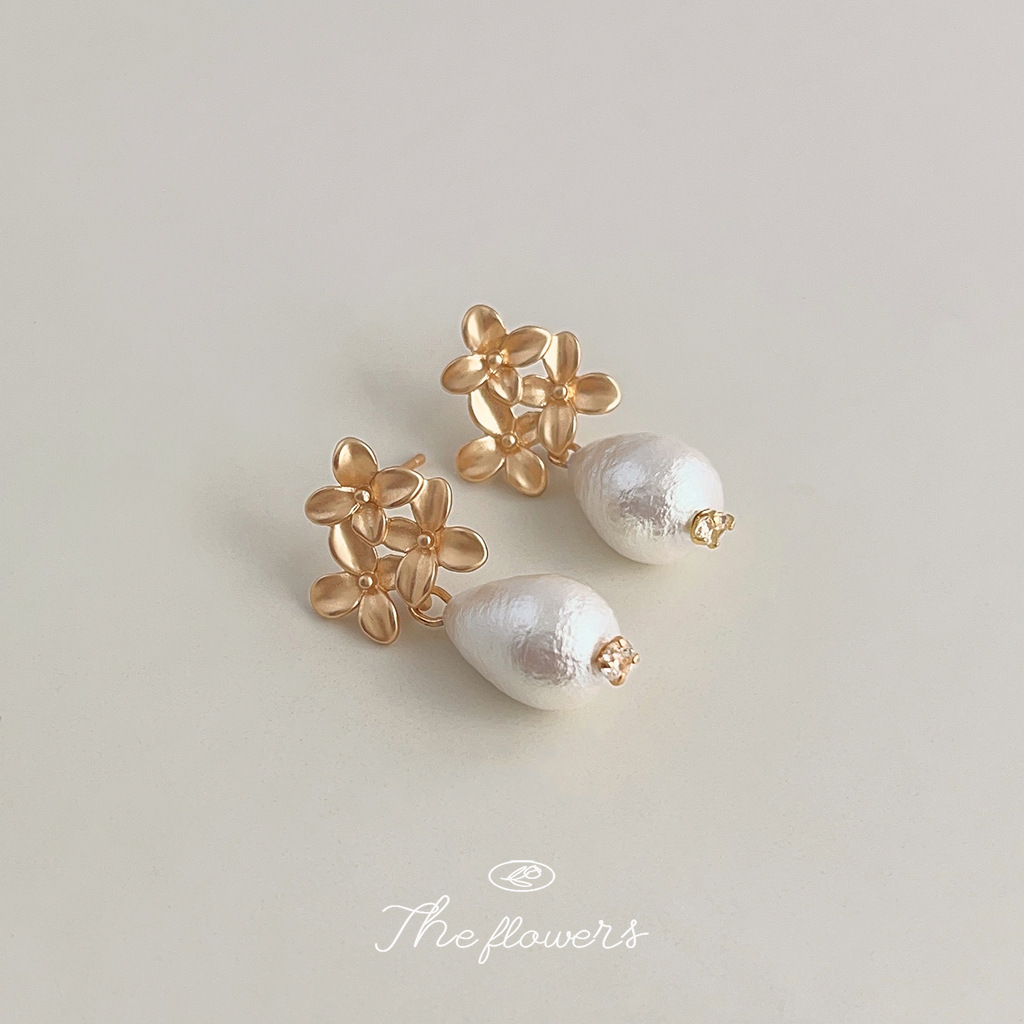 コットンパール〜ライトラグジュアリースタイルハイエンド花びらマットシルバー針ウォータードロップイヤリング工場新しいトレンディでエレガントなイヤリング