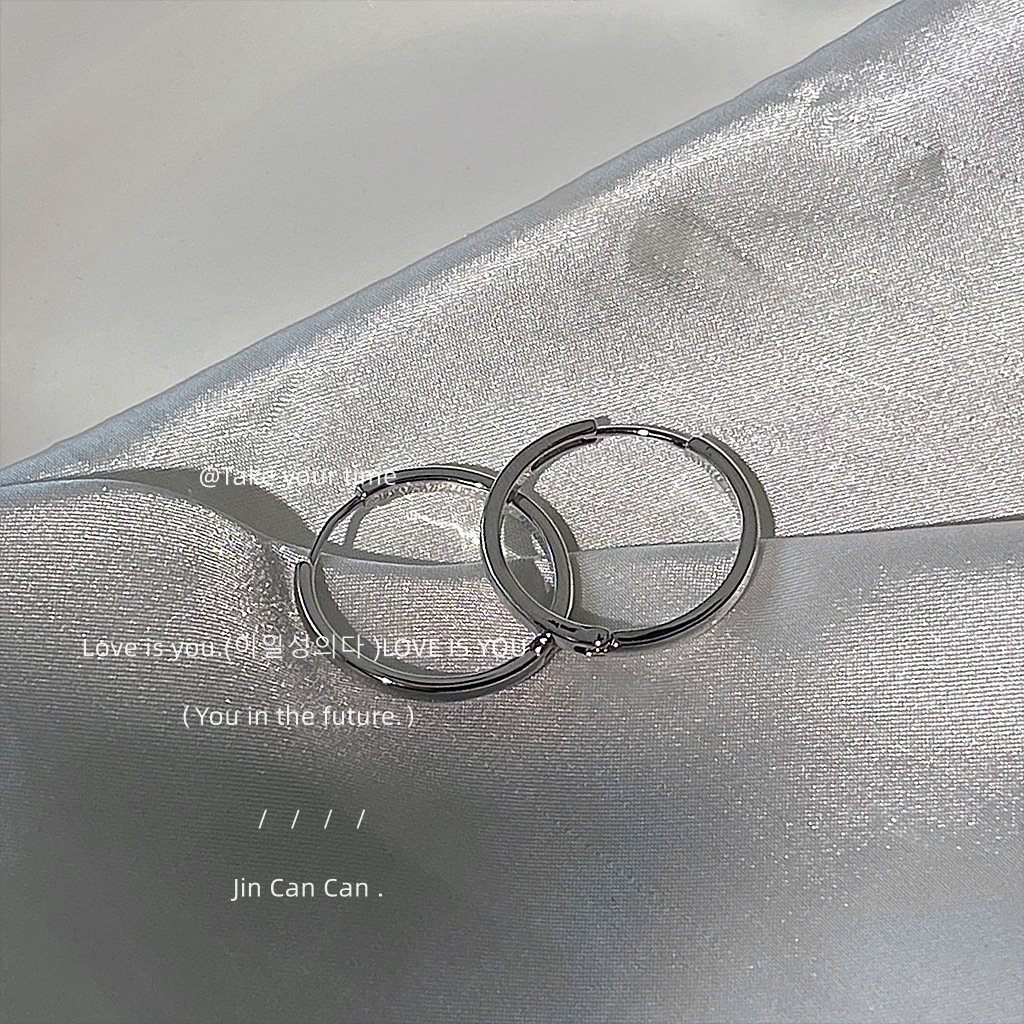 クールなスタイルのファッショナブルなシルバーのプレーンフープイヤリング、ヨーロッパとアメリカンスタイルの通勤用多用途メタリックラウンドイヤリング、ハイエンド