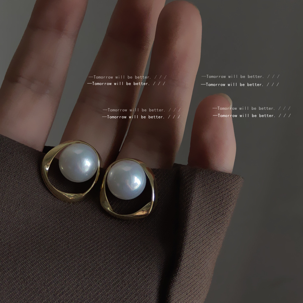 フランスインスタのブロガーが自分で紹介します。S 925銀針メッキ14k真金は大真珠韓国版耳飾り女性c型イヤリングをはめ込んでいる