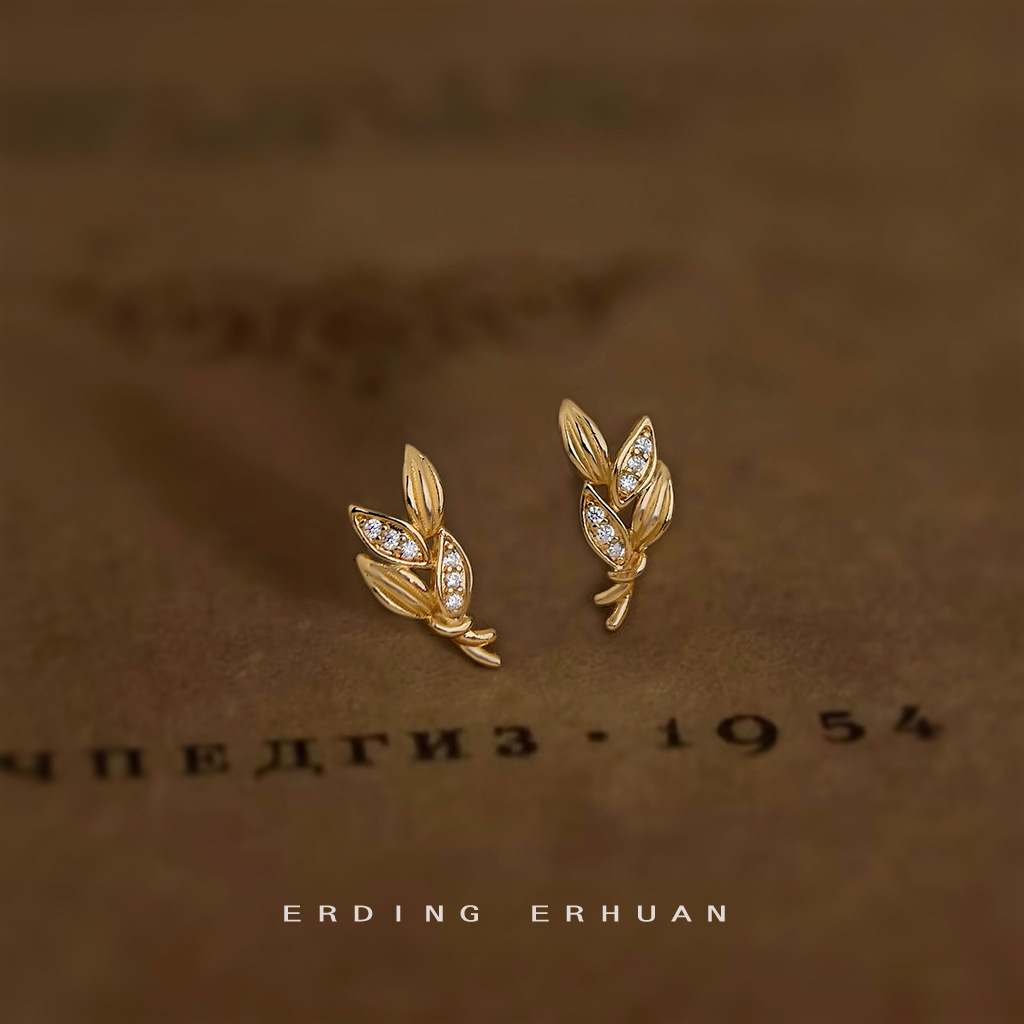 オリジナル多用途、小さくてシンプルな小麦の穂マイクロ象嵌ジルコンリーフイヤリング、パーソナライズされた小さなギフトイヤリング、工場ジュエリー