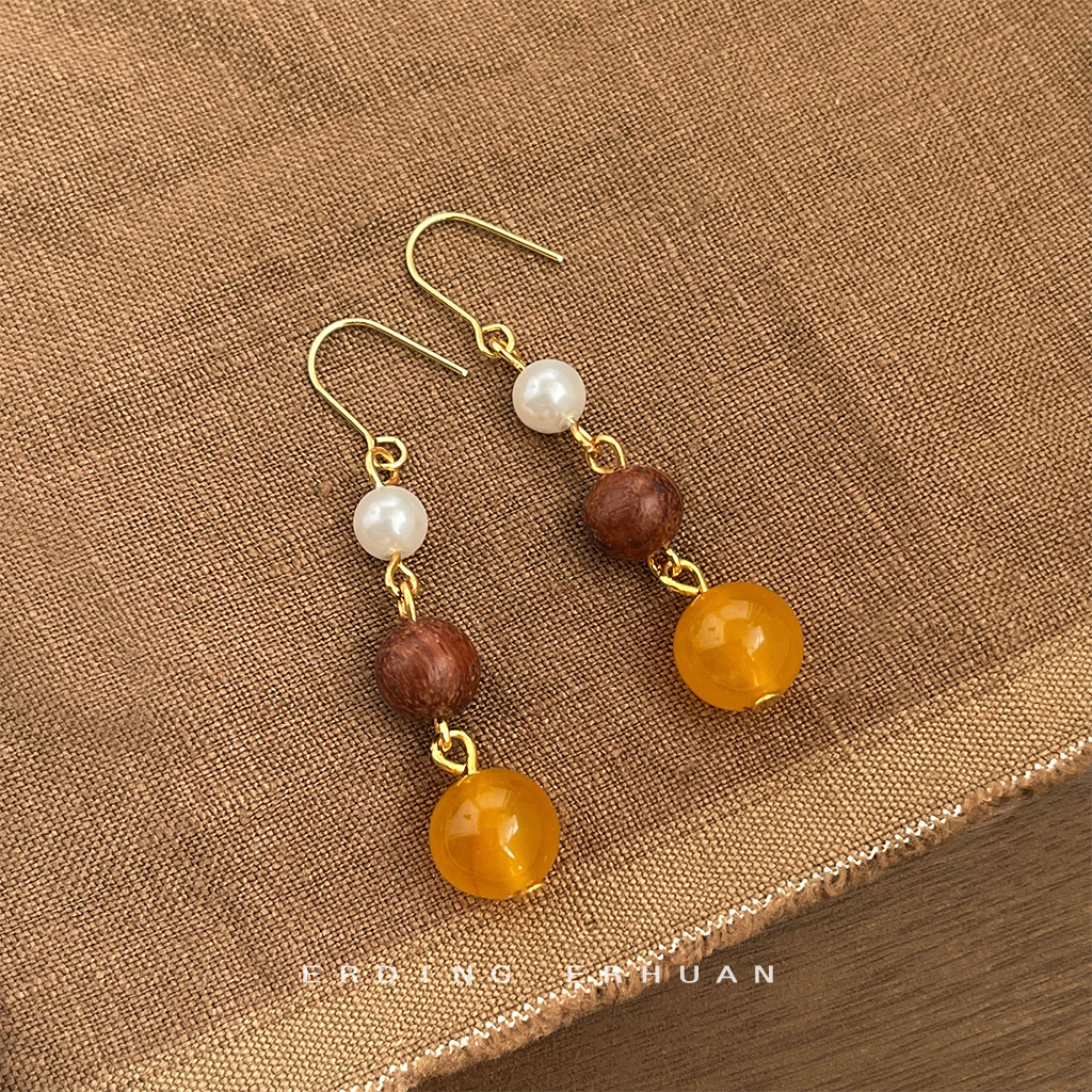 文学レトロエスニックスタイルロングタッセル天然石手作りイヤリング女性のための義烏ジュエリー工場イヤリングサプライチェーン