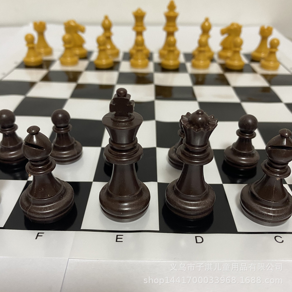 プラスチック模造木色チェス駒プラスチックフィルム付チェス盤セット王高49mm約90グラム