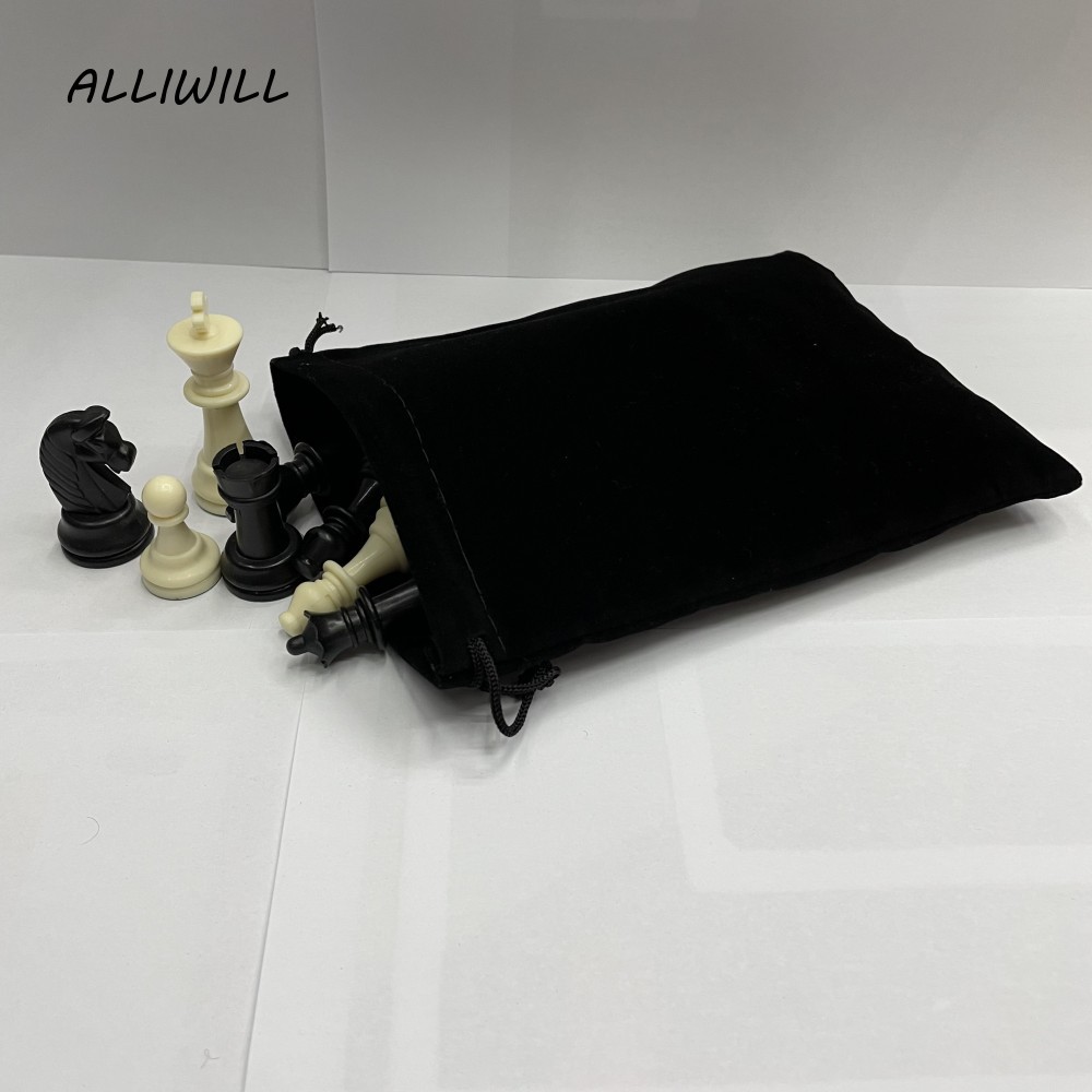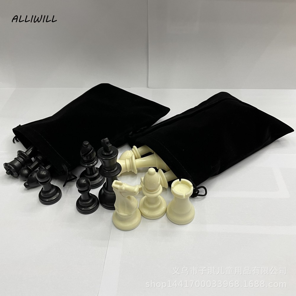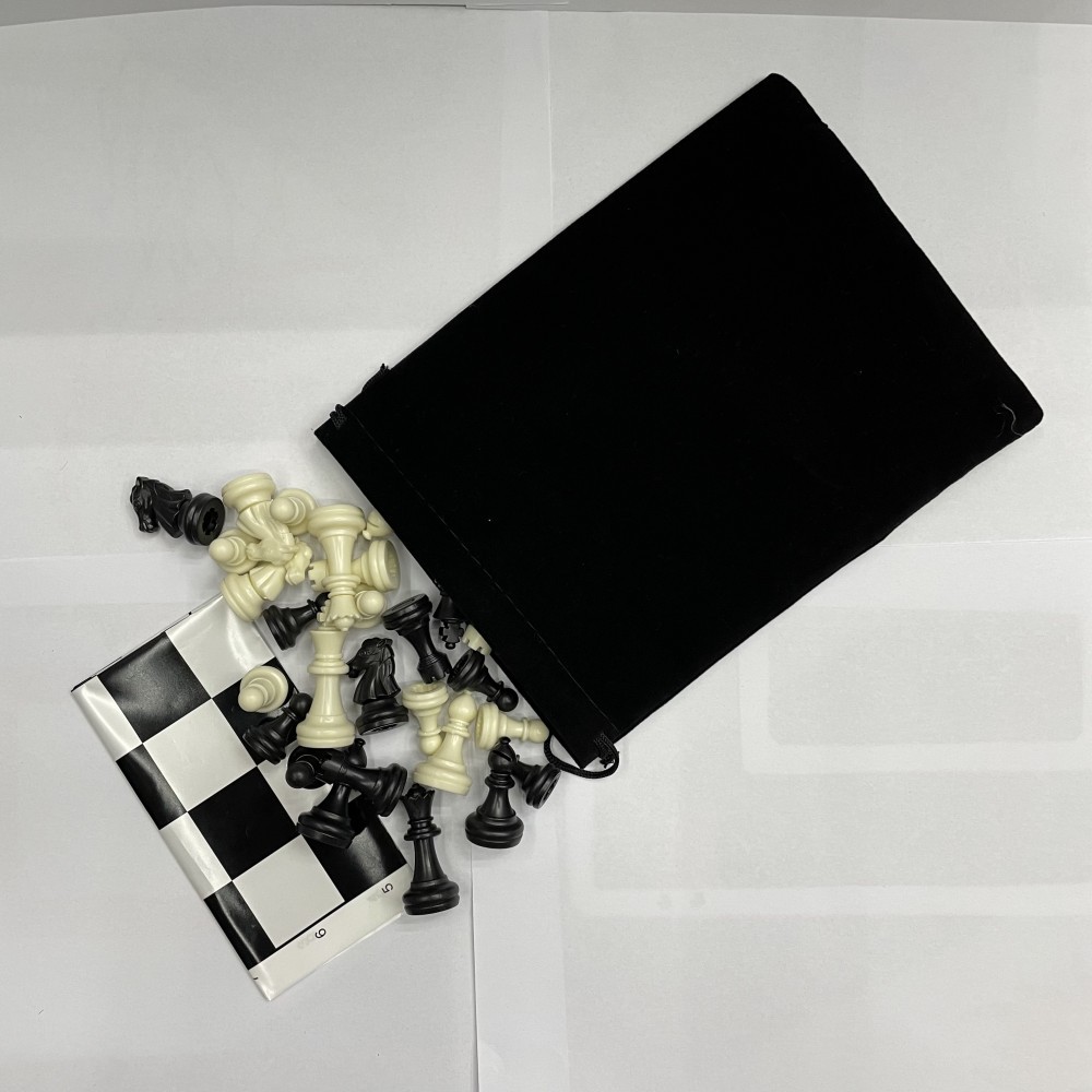 プラスチックチェス黒白色王高さ49mmプラスチックフィルムボード25cm束口ベルベットバッグ約100グラム