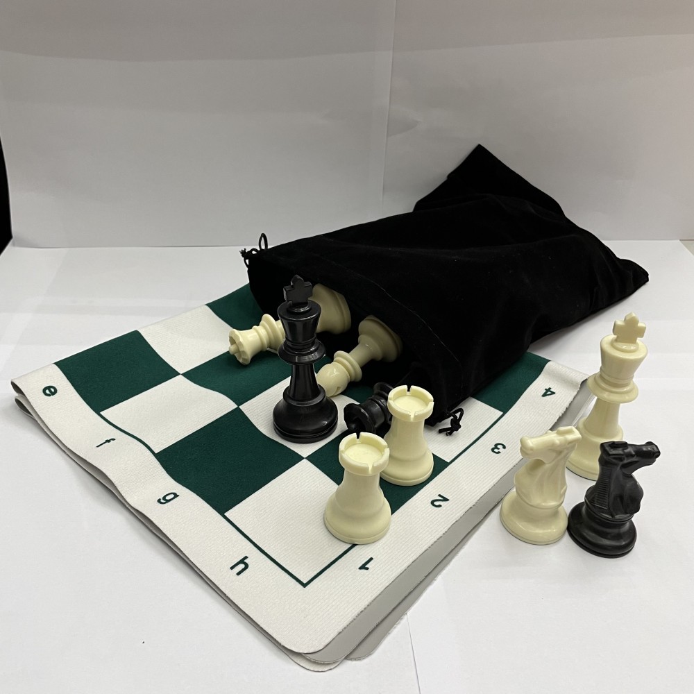 アウトドアポータブルジッパーバックパックチェス模造革碁盤王高さ75mm袋45cmダブル王妃付き