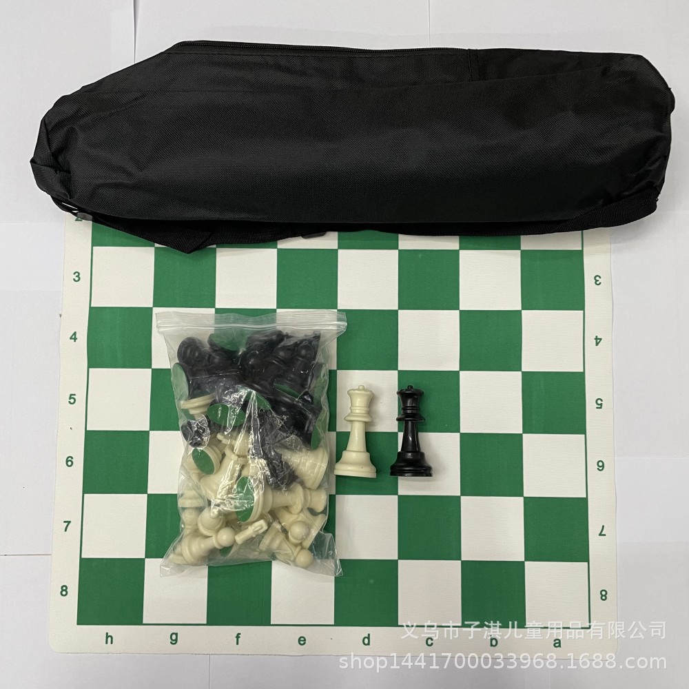 ジップロックバックパックビニール国际象棋王高さ65mm模造革黒白チェックボード35cmセット长さ38cm