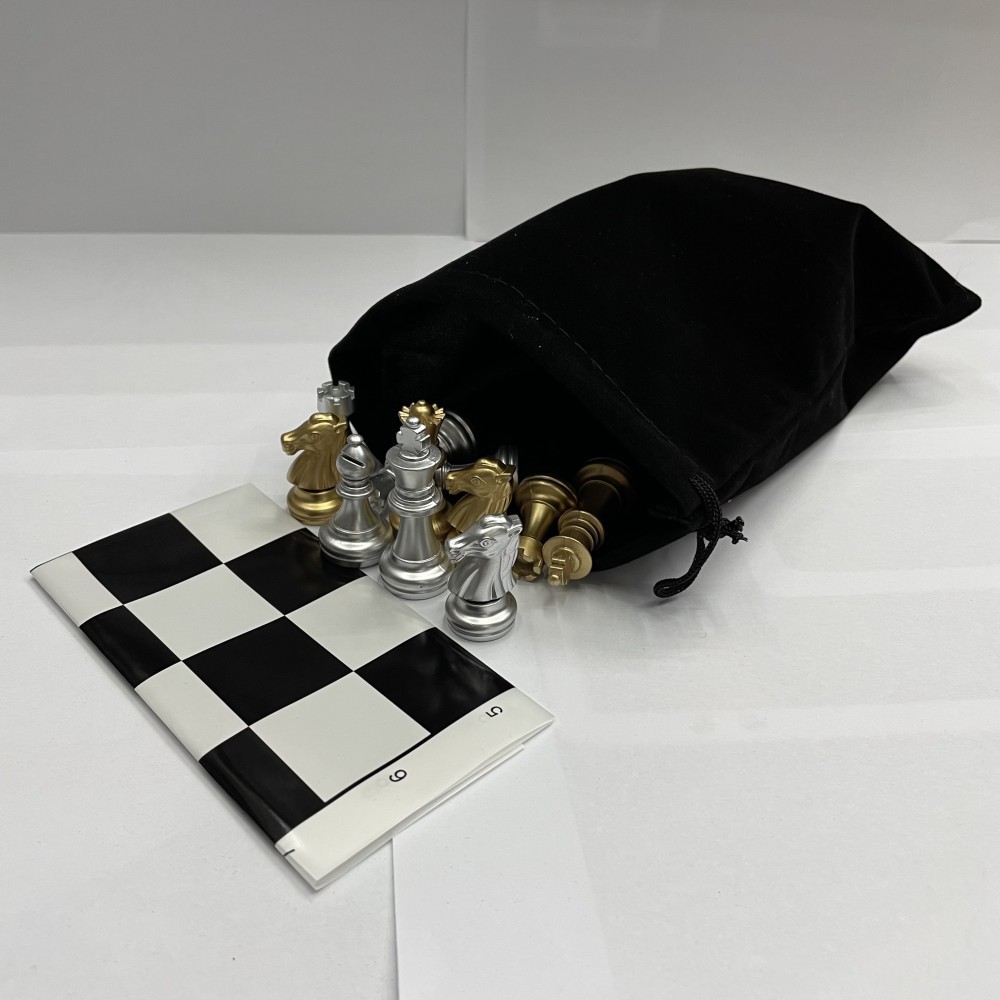 プラスチック製チェス駒王高さ65mm束口ベルベット袋約160グラム