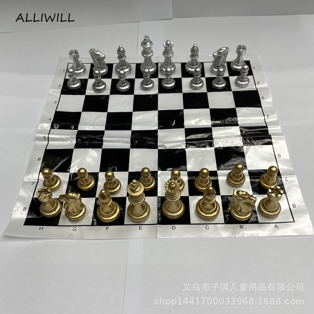 プラスチックメッキ箔押しシルバーチェスプラスチックフィルム付きチェス盤セット王高49mm約90グラム