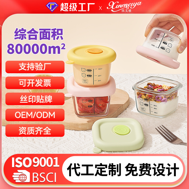 ベビー専用ガラス製フードボウル、蒸し・電子レンジ対応、耐熱性、子供用フードボックス、蒸し卵ボウル、冷凍