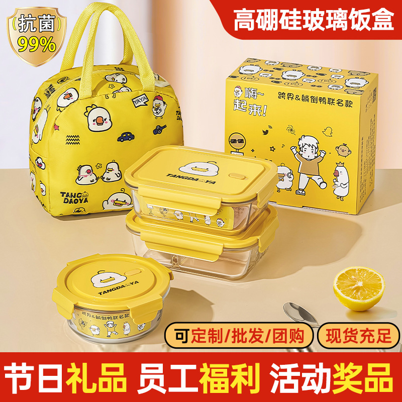ガラス製ランチボックス、無味ランチボックス、電子レンジ対応、食品保存ボックス、ポータブル漫画ギフトボックス