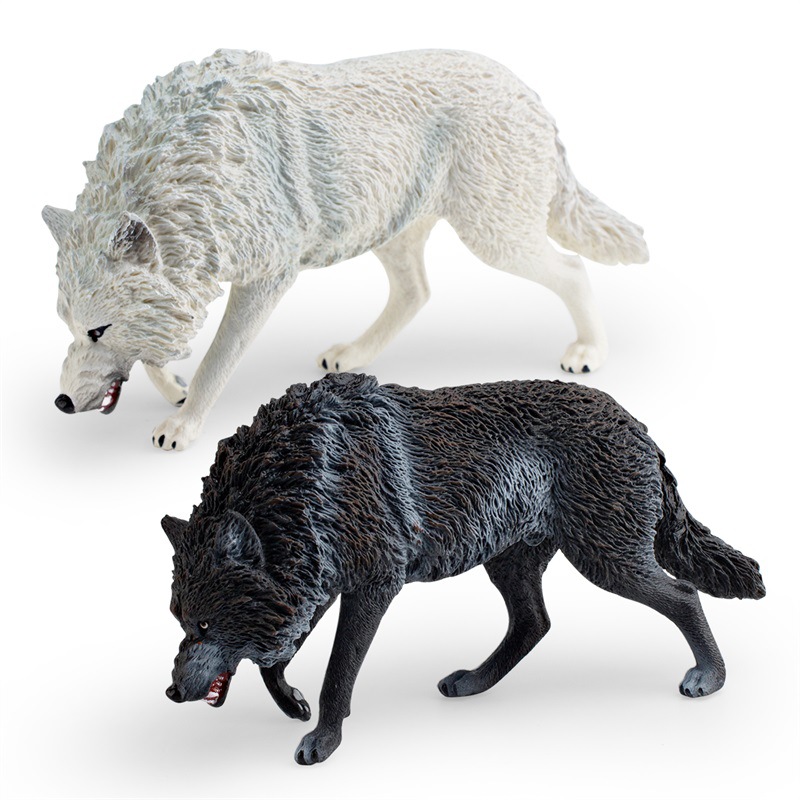 越境シミュレーション子供中実静的動物模型セット黒狼白狼模型装飾早教認知置物