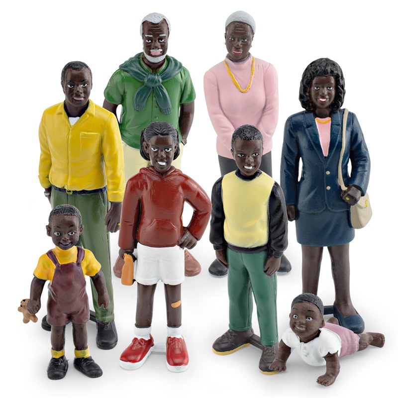 シミュレーション黒人家族人物モデルおじいちゃんおばあちゃんお父さんお母さん男の子女の子子供認知人形置物