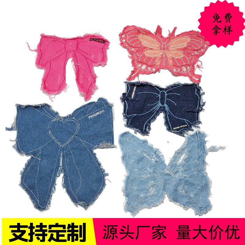 ディザトーン熱金デニム蝶ネクタイ布貼り服装バッグアクセサリーdiy装飾卸売り