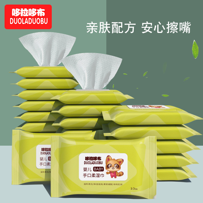 ドラえもん赤ちゃんの口と鼻の綿の柔らかい布新生児使い捨て携帯用ウェットティッシュ10枚入り6338