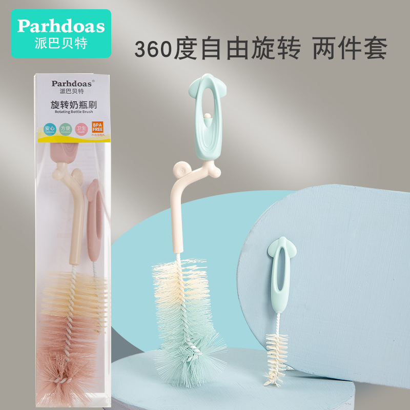 派巴貝特乳幼児哺乳瓶ブラシ2点セット360 ° 回転可能哺乳瓶ブラシセットおしゃぶりブラシ74612