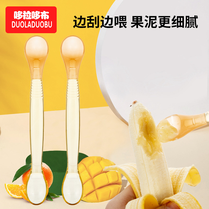 ドラえもんの赤ちゃんは泥を剃るスプーン + 飼育スプーンの二重スプーンの果物のスプーンの柔らかいシリコンのスプーン6494