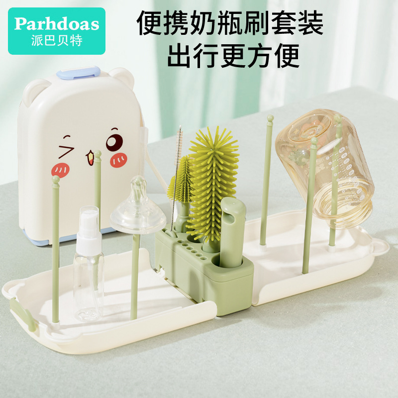 パイバーベット ポータブルボトルブラシセット 排水ラック+ボトルボトル洗浄ブラシ トラベルサイズ 75435