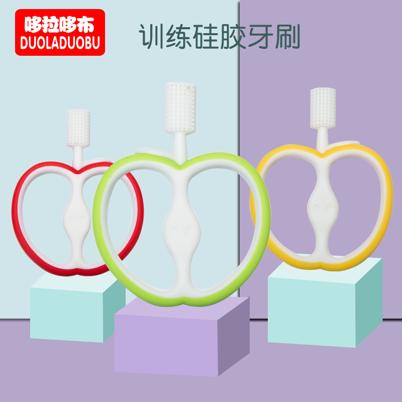 ドラえもんの新しい赤ちゃんのリンゴの形のシリカゲルの乳の歯ブラシの赤ちゃんのシリカゲルの口腔は歯のゴムの6204をきれいにします。