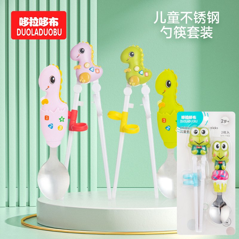 ドラえもん子供スプーン箸セット赤ちゃん食事スプーン学習箸セット304ステンレスアニメ6441