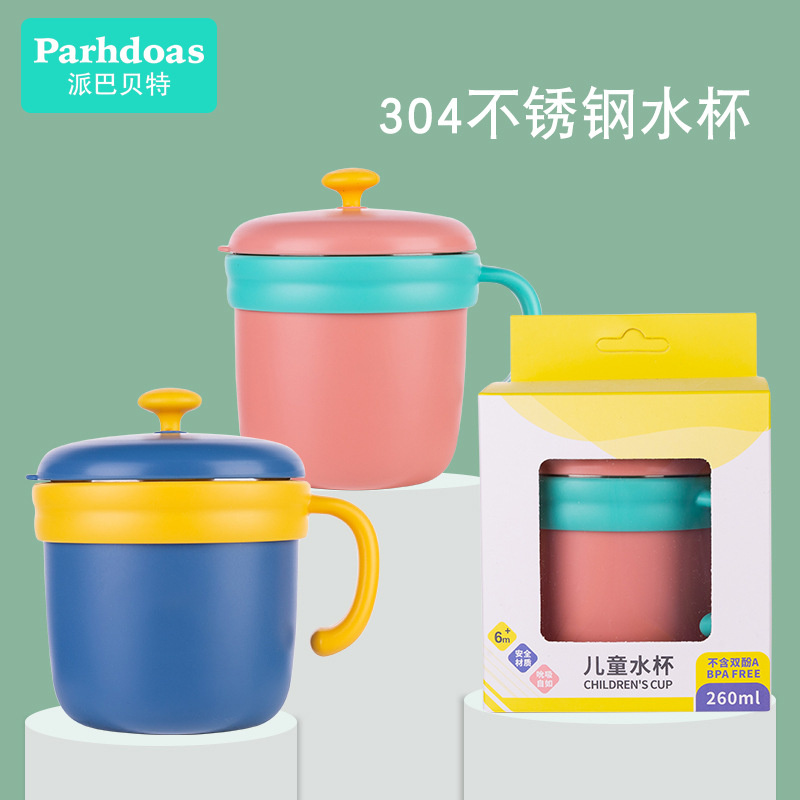 派巴貝特児童飲料カップハンドル付き蓋付きカップ304ステンレス保温カップ家庭用カップ73547