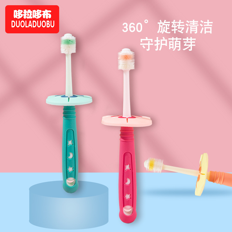 ドラえもんの子供用の柔らかい毛の歯ブラシ360 ° 回転してきれいにします。歯ブラシの喉の邪魔板は全面的にきれいにします。6366