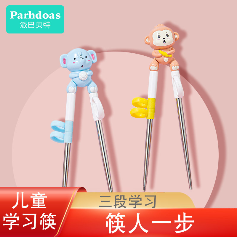 派巴貝特子供漫画学習箸ステンレス動物造形赤ちゃん学習食事指環箸73318
