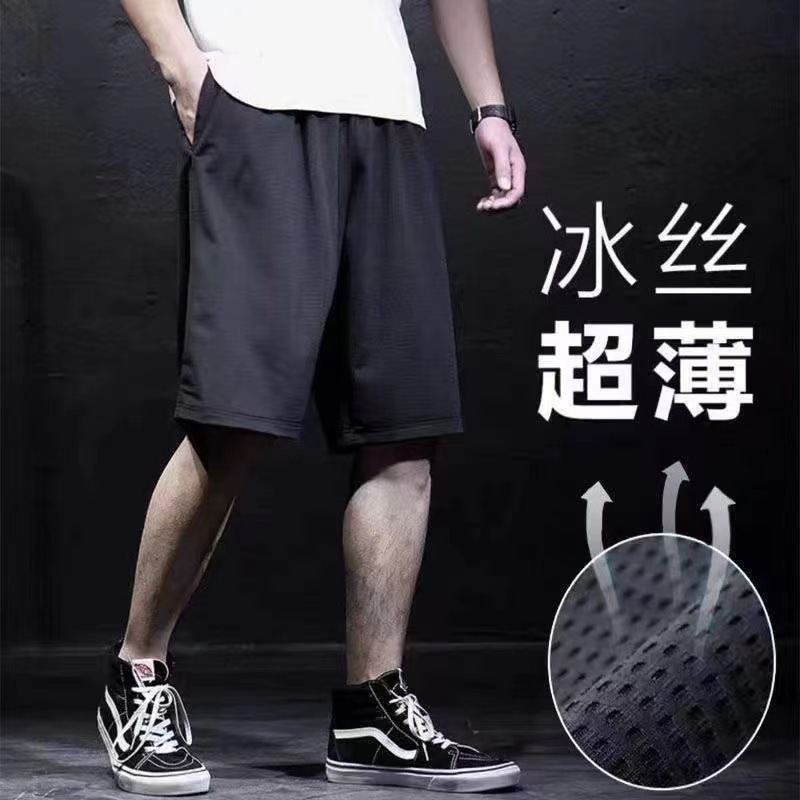 スポーツショーツメンズ速乾アイスシルク5点パンツ夏薄手ランニングフィットネスルーズカジュアルメッシュ空調パンツ
