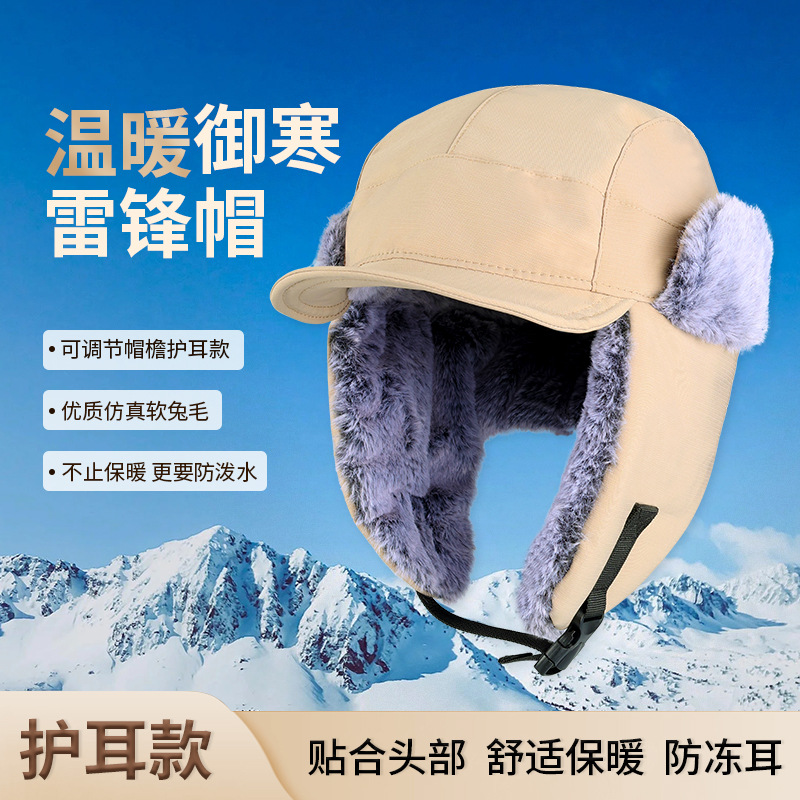 冬の男性の帽子の屋外のウサギの絨毯のアヒルの舌の雷鋒の帽子は厚い保温の綿の帽子の女性の越境の耳の防寒帽を保護します。