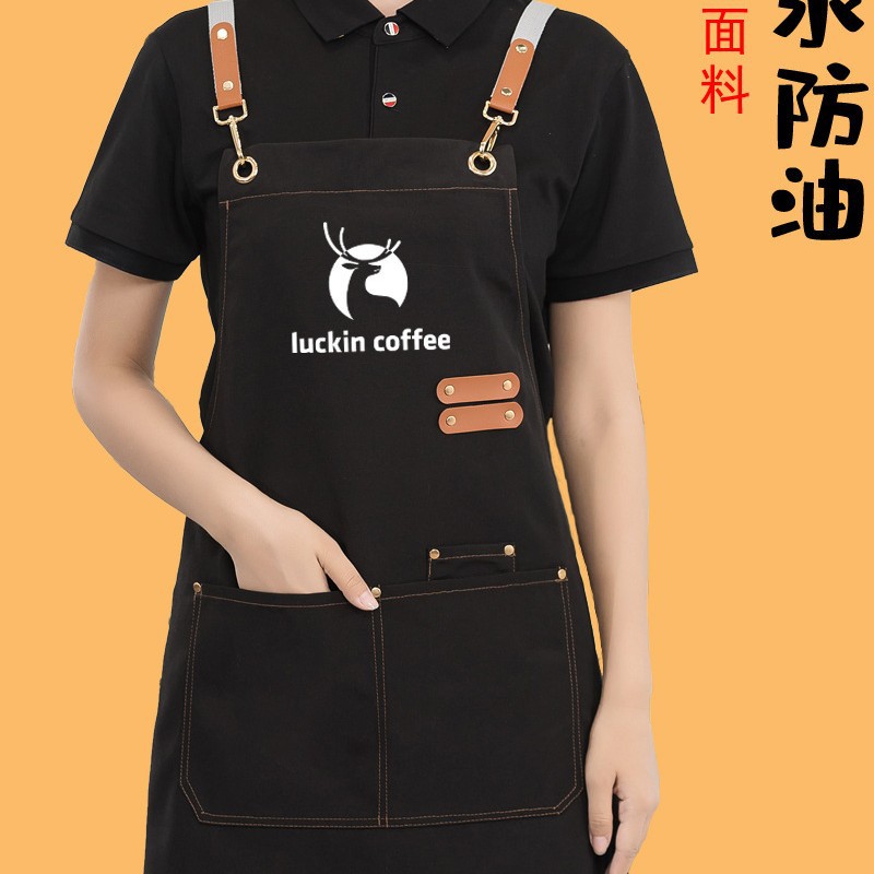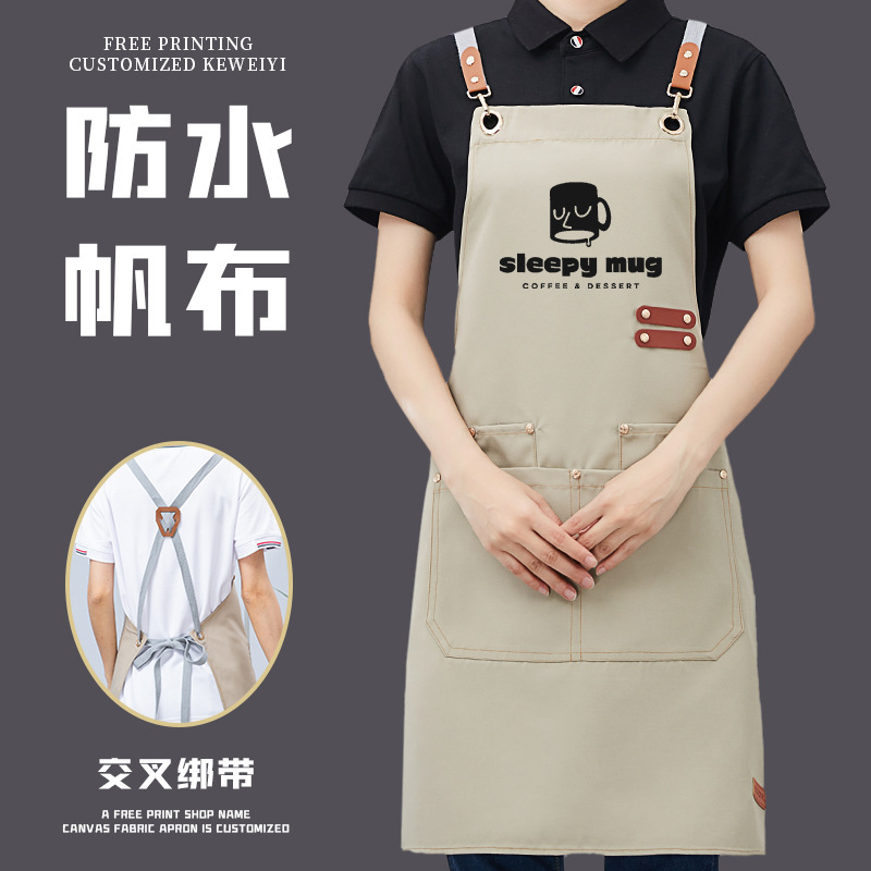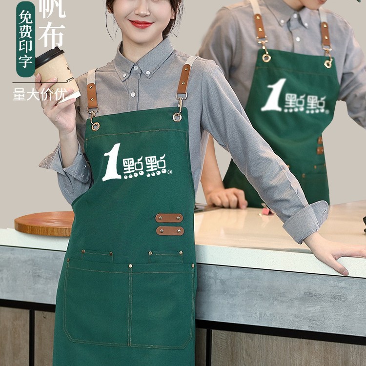キャンバスエプロン飲食専用カスタムロゴ印字2023ネットレッド新型防水作業服ミルクティー店スーパー