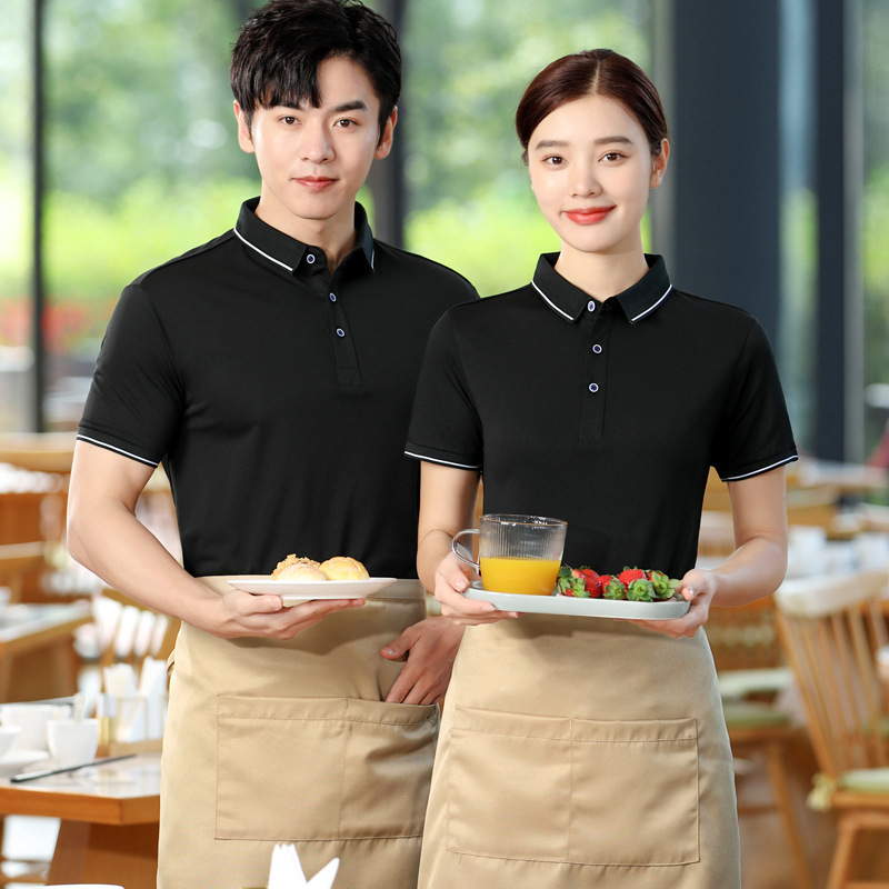 ウェイター作業服半袖ケータリング鍋食堂ミルクティーレストランカフェバーKTV夏Tシャツカスタマイズ