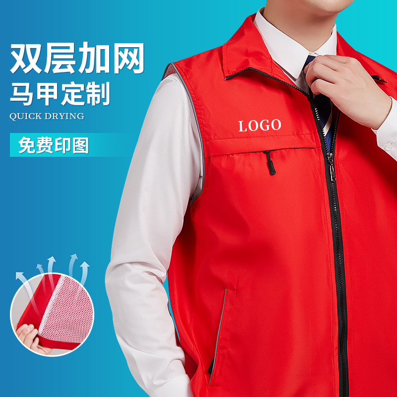 ボランティアベストカスタマイズされた作業服チームビルディング活動プロモーションベストカスタムプリントロゴスーパーマーケットエクスプレス作業服レッド