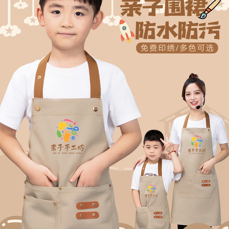 子供エプロンロゴ印字親子絵手作り男の子キャンバス防水キッチンカバー