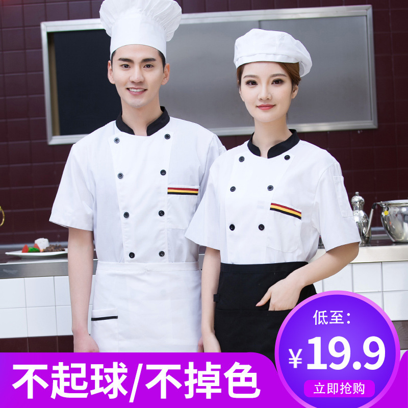飲食料理人作業服女性半袖夏通気ファストフードホテル食堂レストランキッチン長袖工衣白色