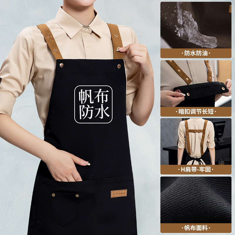 キャンバスエプロンロゴ印字カスタム飲食専用ミルクティー店花屋コーヒーアイロン師防水作業服女性