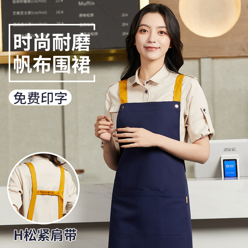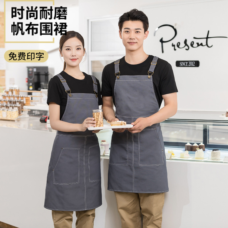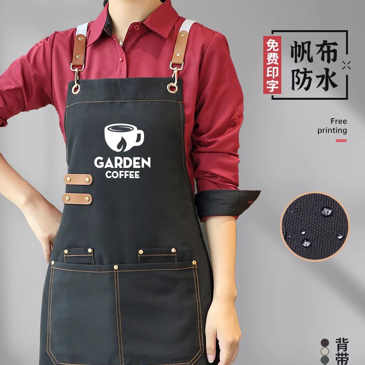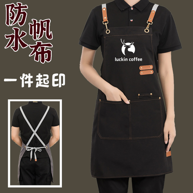 キャンバス防水作業カスタマイズエプロンロゴ印刷飲食専用ミルクティー店コーヒーメーカーレストランサービスカスタマイズ
