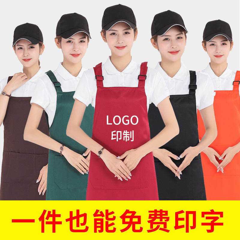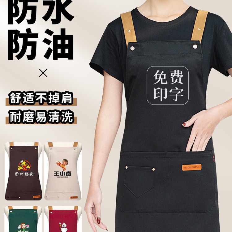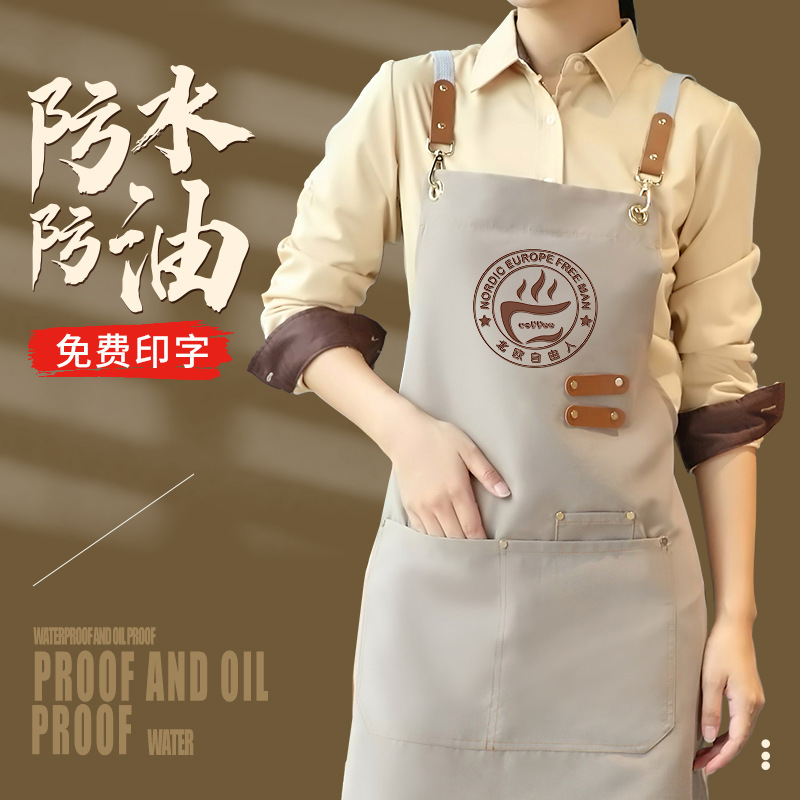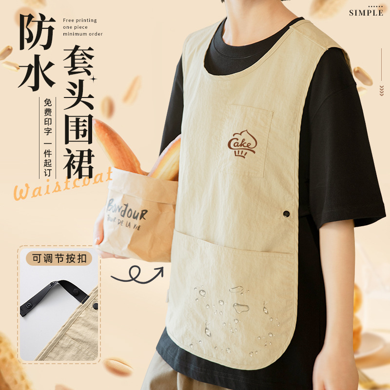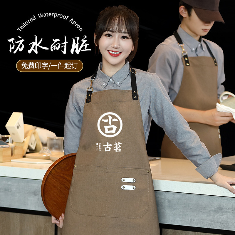 防水エプロンカスタムロゴ印字飲食専用の男性作業服女性キッチンミルクティー店出勤ウエスト