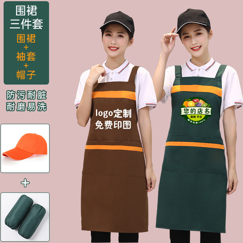 エプロンカスタムロゴ食堂スーパー果物店ファッション作業服女性飲食サービス員カスタム印字