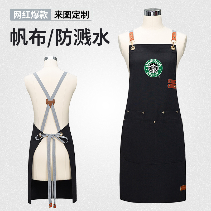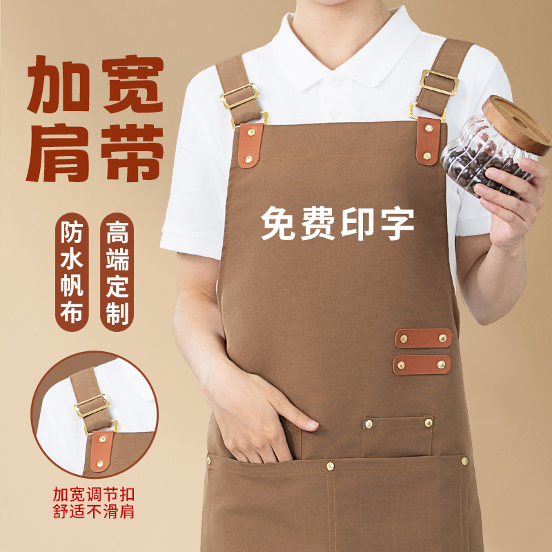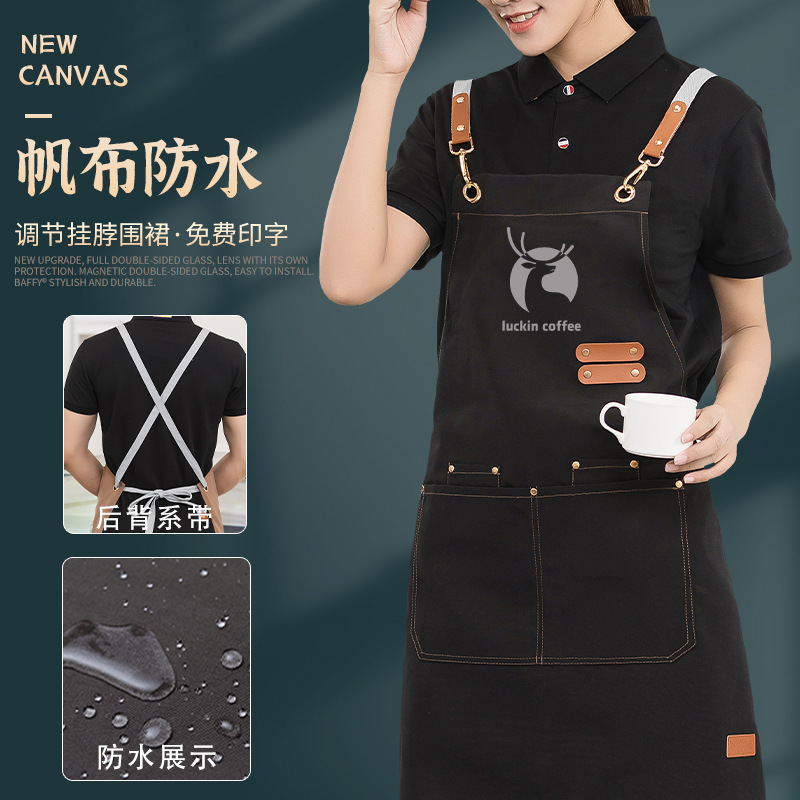 商用キャンバス防水エプロンカスタマイズ可能ロゴ印字飲食専用コーヒーミルクティー店高級作業服女性