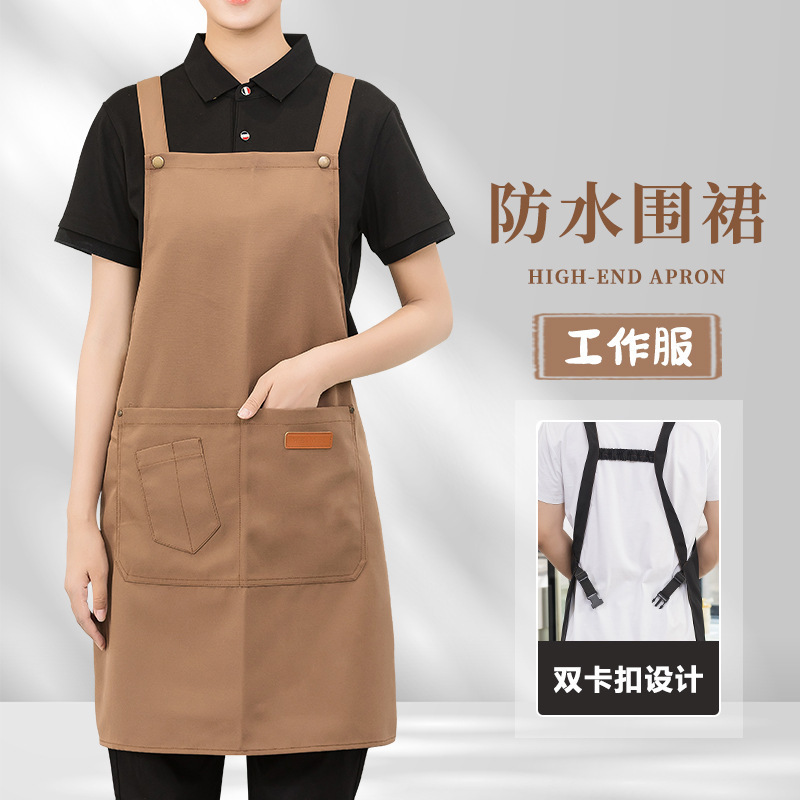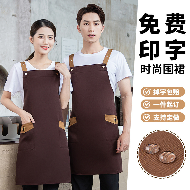 エプロン飲食専用ロゴ印字防水防油ミルクティー焙煎麺館ホテル作業服カスタム女性キッチン
