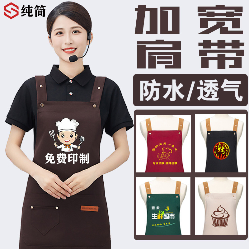 防水広告エプロンカスタム飲食専用ロゴ印字コーヒーミルクティー店サービスマンスーパー作業服