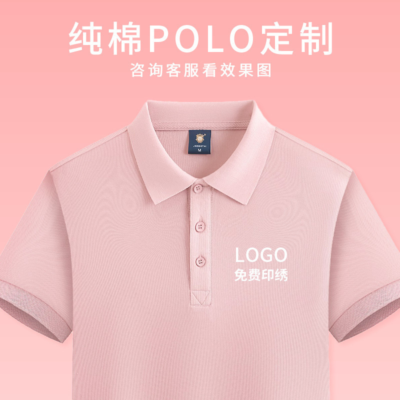 ピンク純綿tシャツ作業服半袖夏美容院母子店幼師工衣女poloシャツ刺繍オーダー