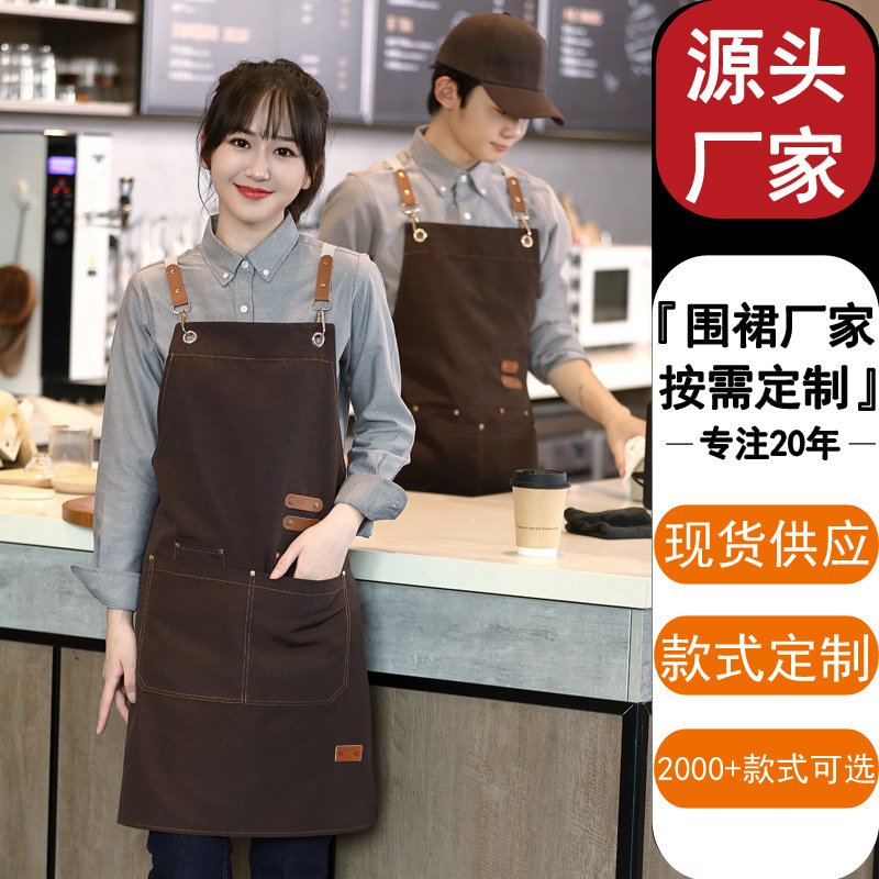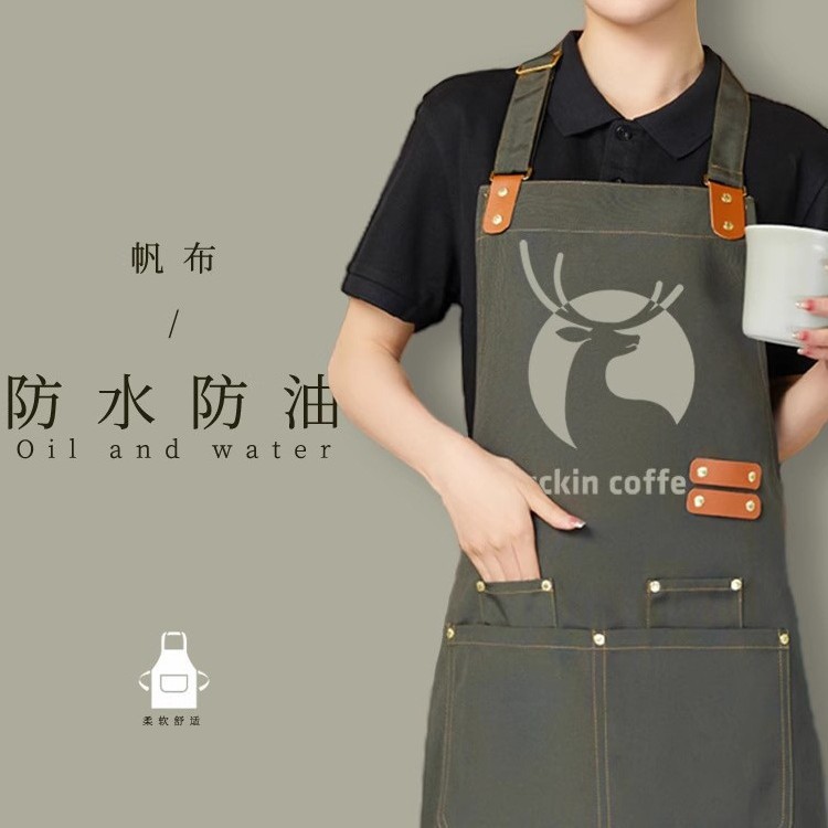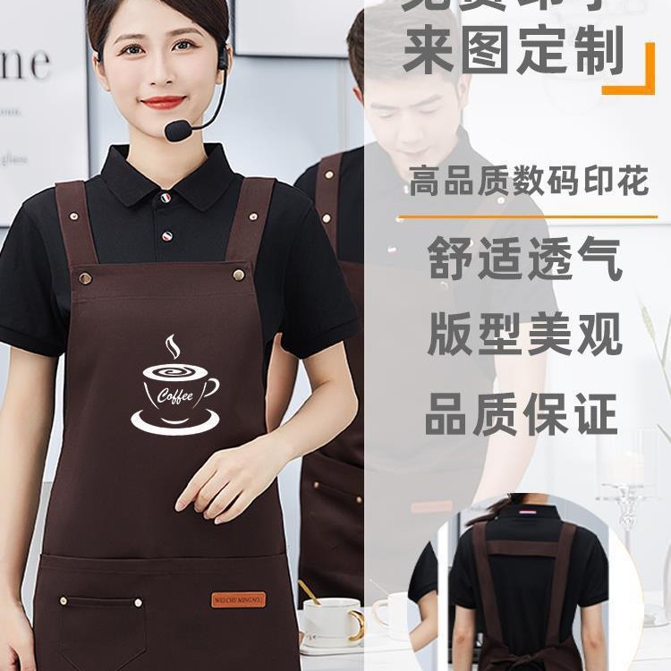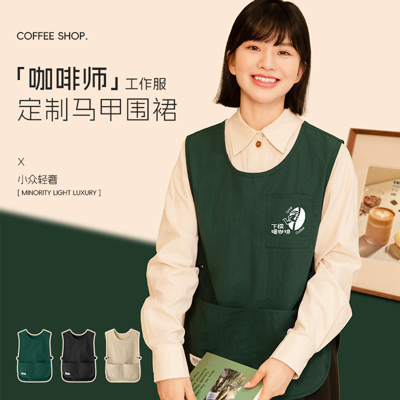 コーヒーミルクティー店馬甲式エプロン防水防油飲食専用カスタム床屋作業服ロゴ印字